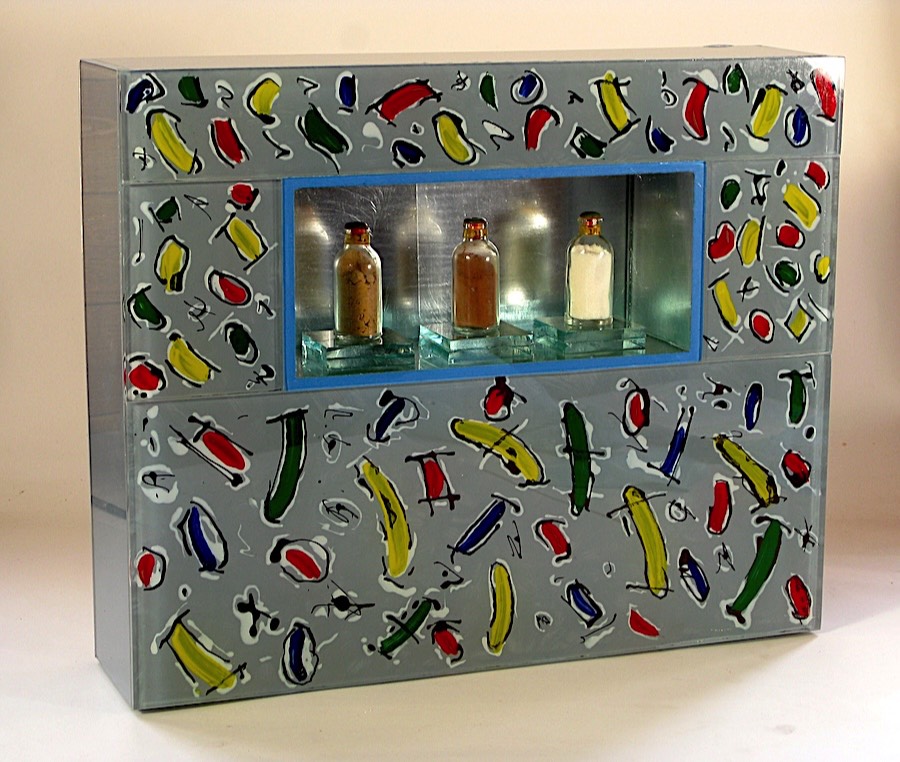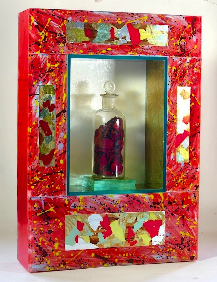Medicinal Vessels: Antique objects, reverse painting on plate glass $1,500 15 x 4 x 12