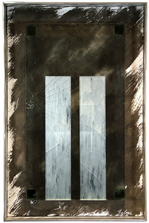 9/11 - 6 Silver leaf, acid-treated glass, fractured glass $1,250 18 x 24