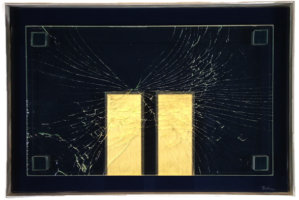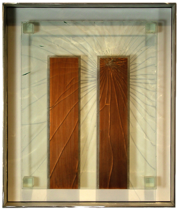 9/11 - 3 Plate glass, Copper leaf, fractured glass $1,250 13 x 16