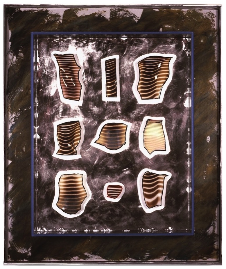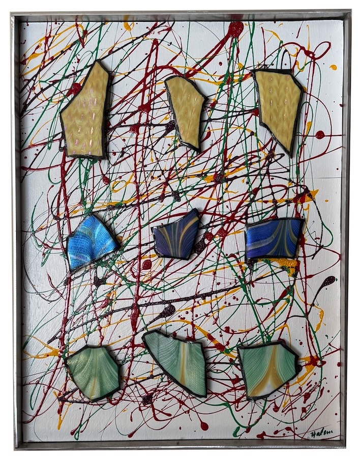 Dale's Shards: Dale Chihuly glass shards, Black acrylic ink. $1,500. 21 x 25