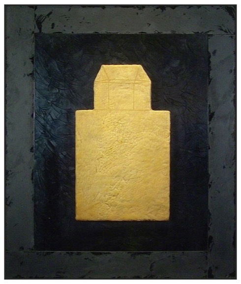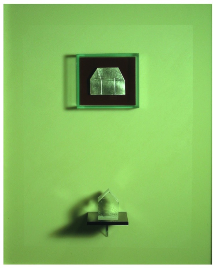 House Portrait: Cast glass, gold leaf, yellow float glass. $1,500. 20 x 25