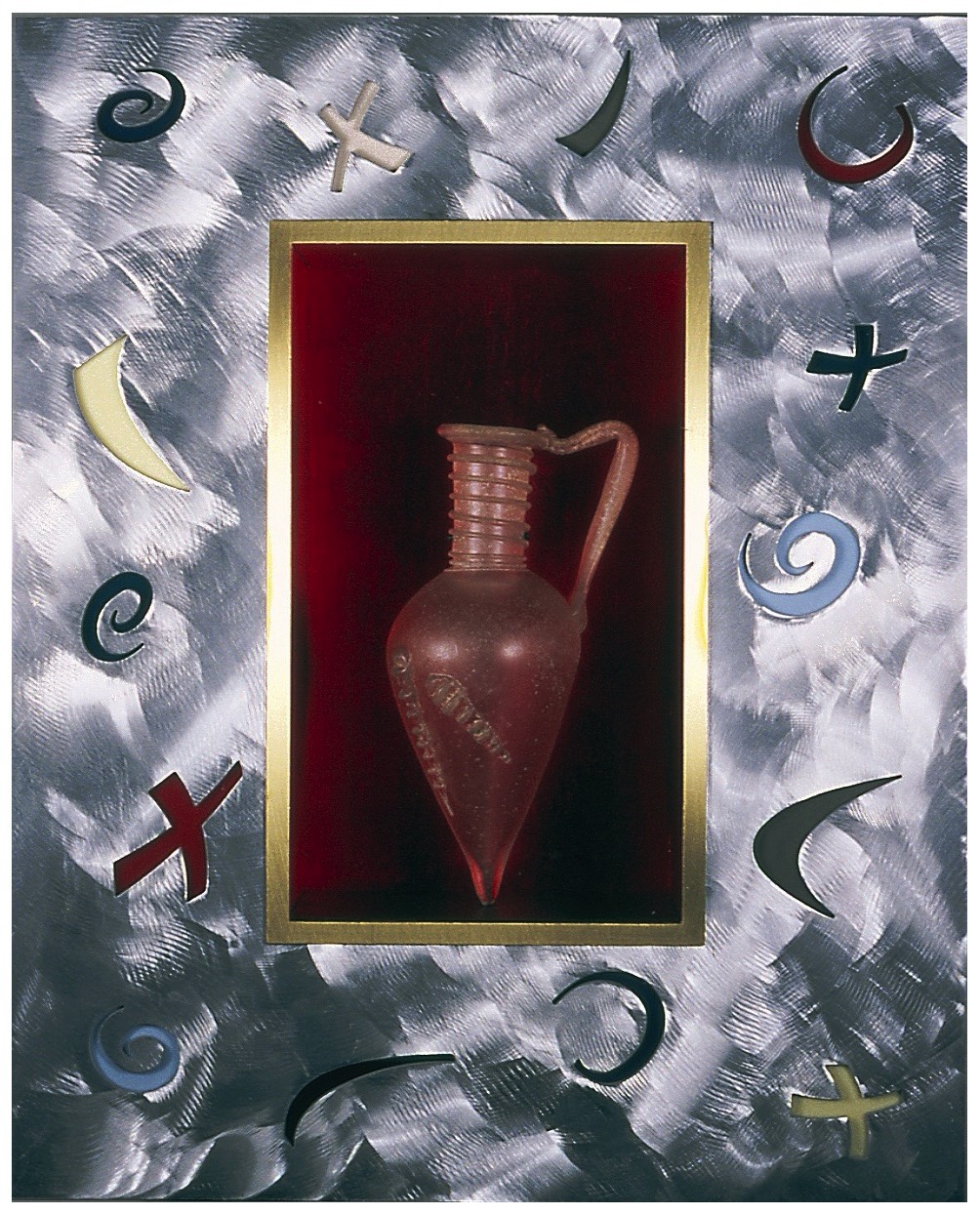 Roman Flask: Blown glass, Aluminum Box. $2,500. 17 x 21 x 5