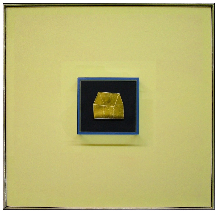 Golden House: Yellow float glass, gold leaf. $1,250. 24 x 23